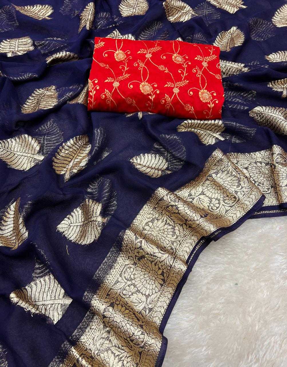 SKU : KE-30912 Catalog : RIN104 APE164 Fabric : Georgette Qty : 1 Pcs Weight : 0.9KG Descriptions : Viscose Georgette Saree With Banarsi Dola Silk Blouse WEIGTH :-0.900 kg
