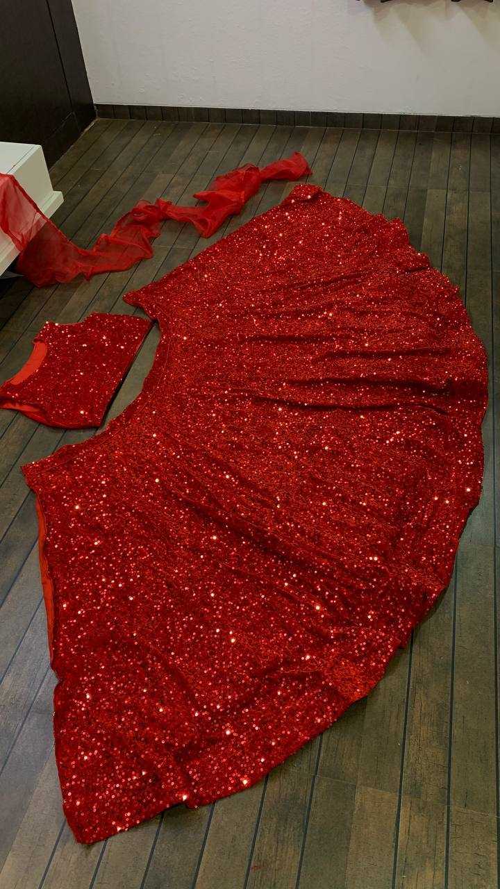 SKU : KE-31904 Catalog : KESH270 123 Fabric : Velvet Qty : 1 Pcs Weight : 2KG Descriptions : Fabric : Velvet lehnga with sequence work all over + can can attach ( 4.25 meter flair ) Velvet blouse with sequence work ( Unstich ) ( Small sequence sleeves fabric given ) Ruffle layer duppata Weight :2 kg