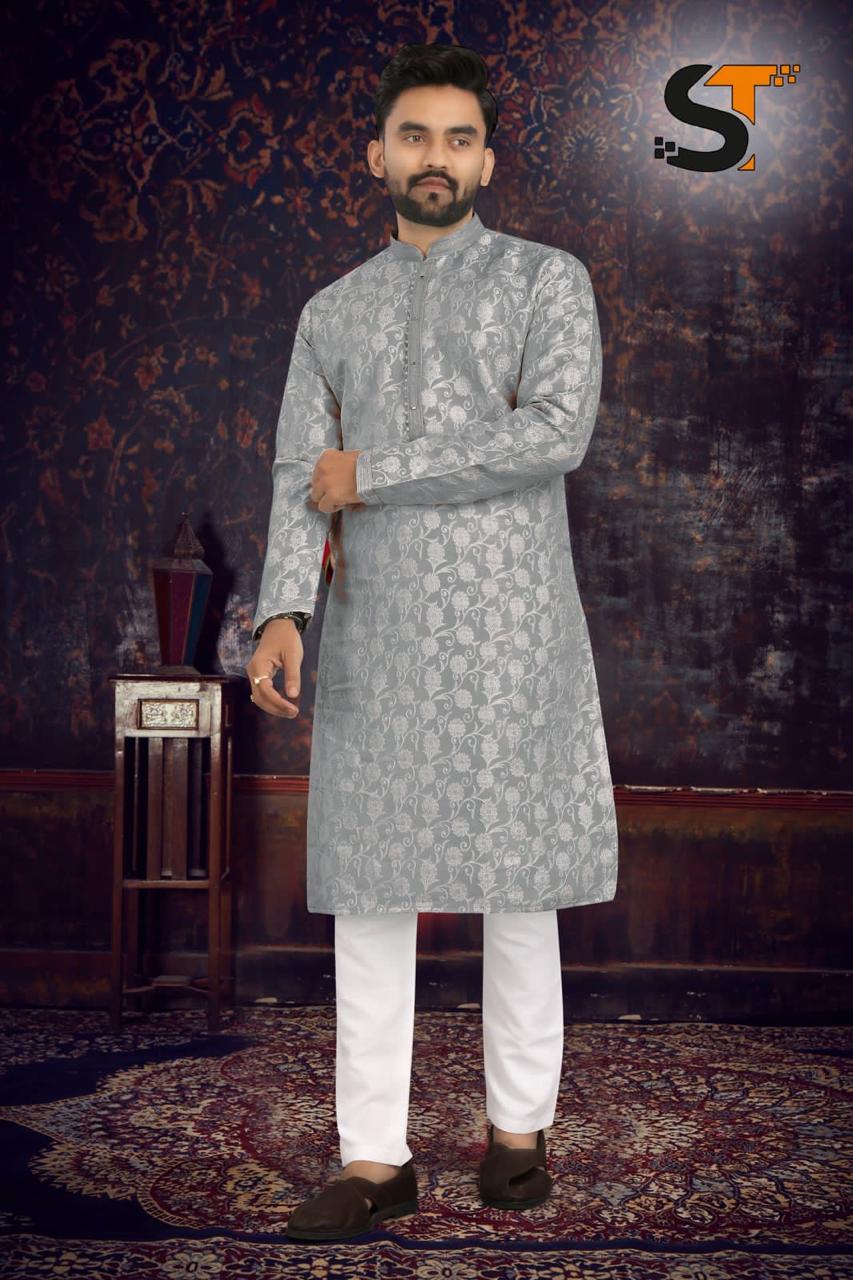 🔸 Fabric Details 🔸 ▪Kurta Fabric :- heavy jacard with inner and beautiful pintex tie Inner fabric: cotton ▪Pajama Fabric :- cotton ▪Total Design:- 5pcs ▪Size:- , 38, 40, 42, 44